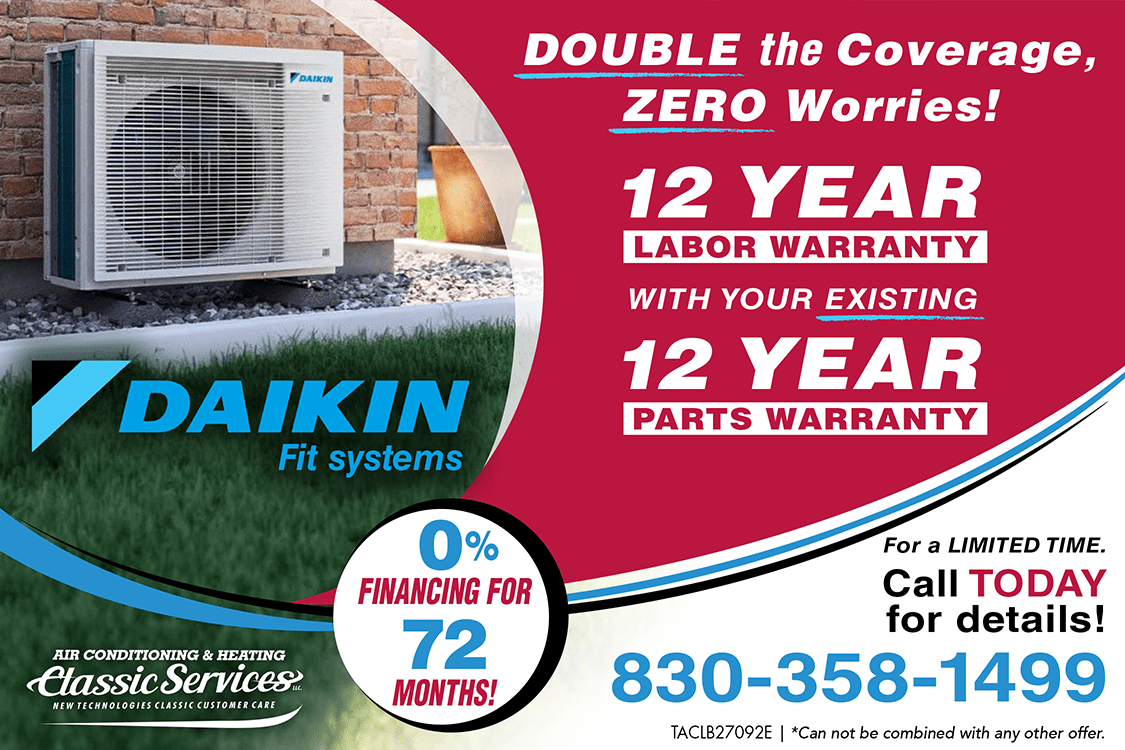 We provide expert air conditioner installation, maintenance and repair to keep your home cool, comfortable and energy efficient all summer. Trust us for all your heating and cooling needs in New Braunfels, San Antonio, Boerne, and surrounding areas. Contact us today to schedule a tune-up or estimate for a new system. Beat the Texas heat with Classic!
